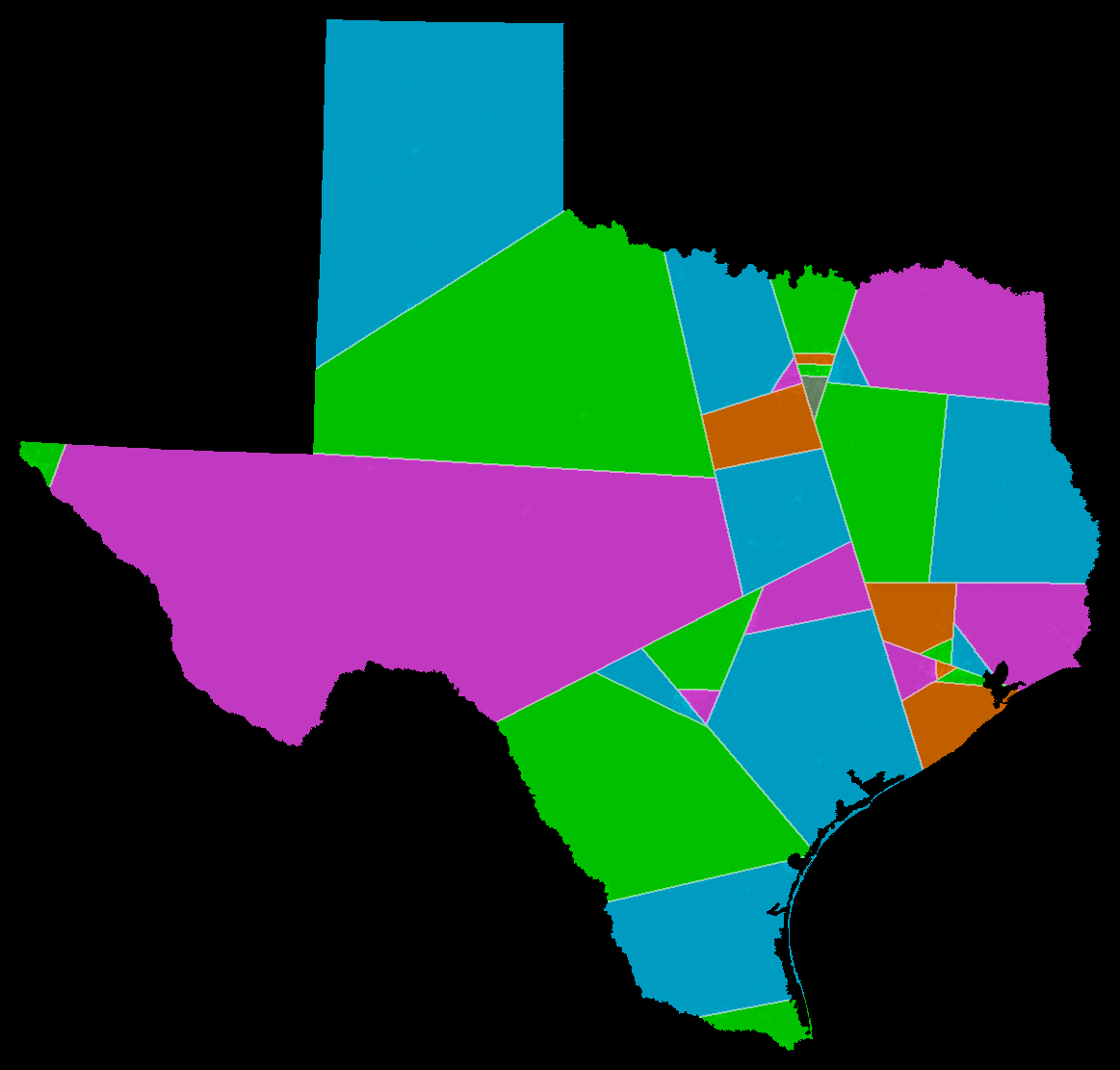 Here I show some examples of congressional districts as they are drawn currently and as the shortest split-line algorithm would draw them.